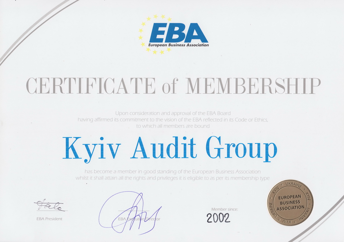 З 2002 року Компанія є активним учасником Європейської Бізнес Асоціації.